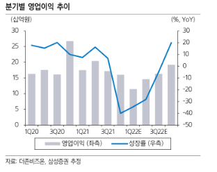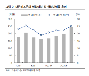 <IBK투자증권(좌), 삼성증권(우) 리포트 발표 더존비즈온 영업이익 추이>